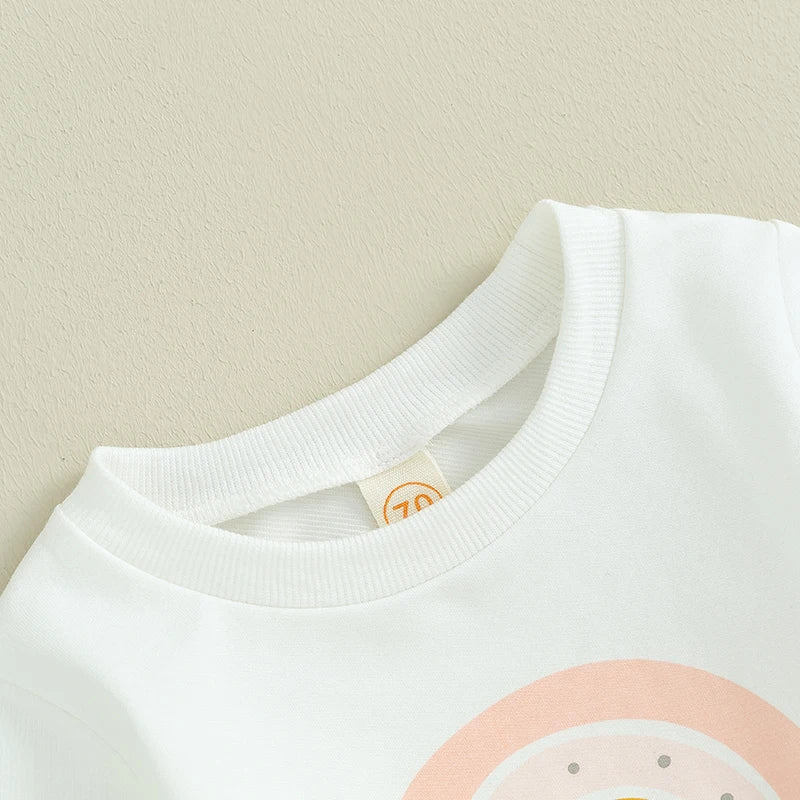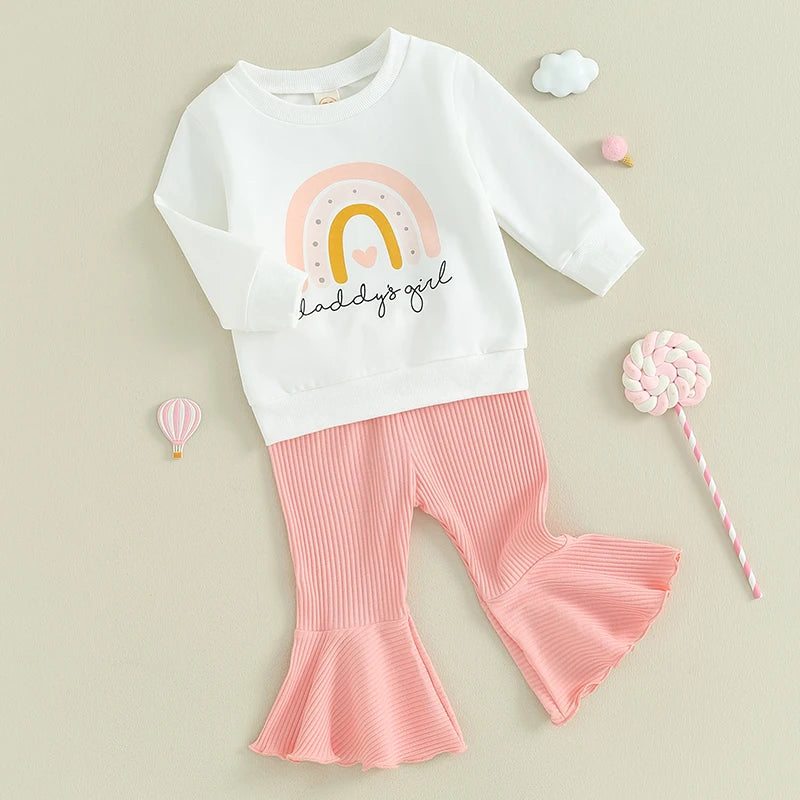 Citgeett Autumn Toddler Girls Fall Pants Sets Long Sleeve Letter Rainbow Print Sweatshirt Tops Solid Color Flared Pants Sets
