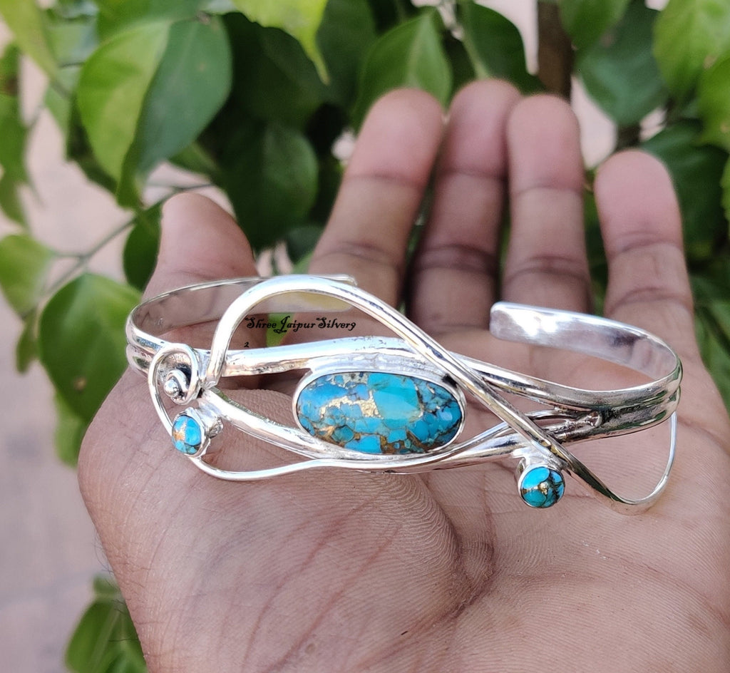 Green Copper Turquoise Bangle, 925 Silver Bangle, Handmade Bangle, Women Bangle, Adjustable Bangle, Everyday Bangle, Silver Bracelet Jewelry
